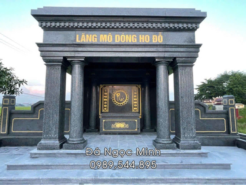 Đá Ngọc Minh giới thiệu Mẫu Lầu thờ đá granite cao cấp, bề thế, trang trọng giống như một gian thờ cúng phù hợp tại các khu lăng mộ đá dòng họ lớn hoặc khu lăng mộ tổ.